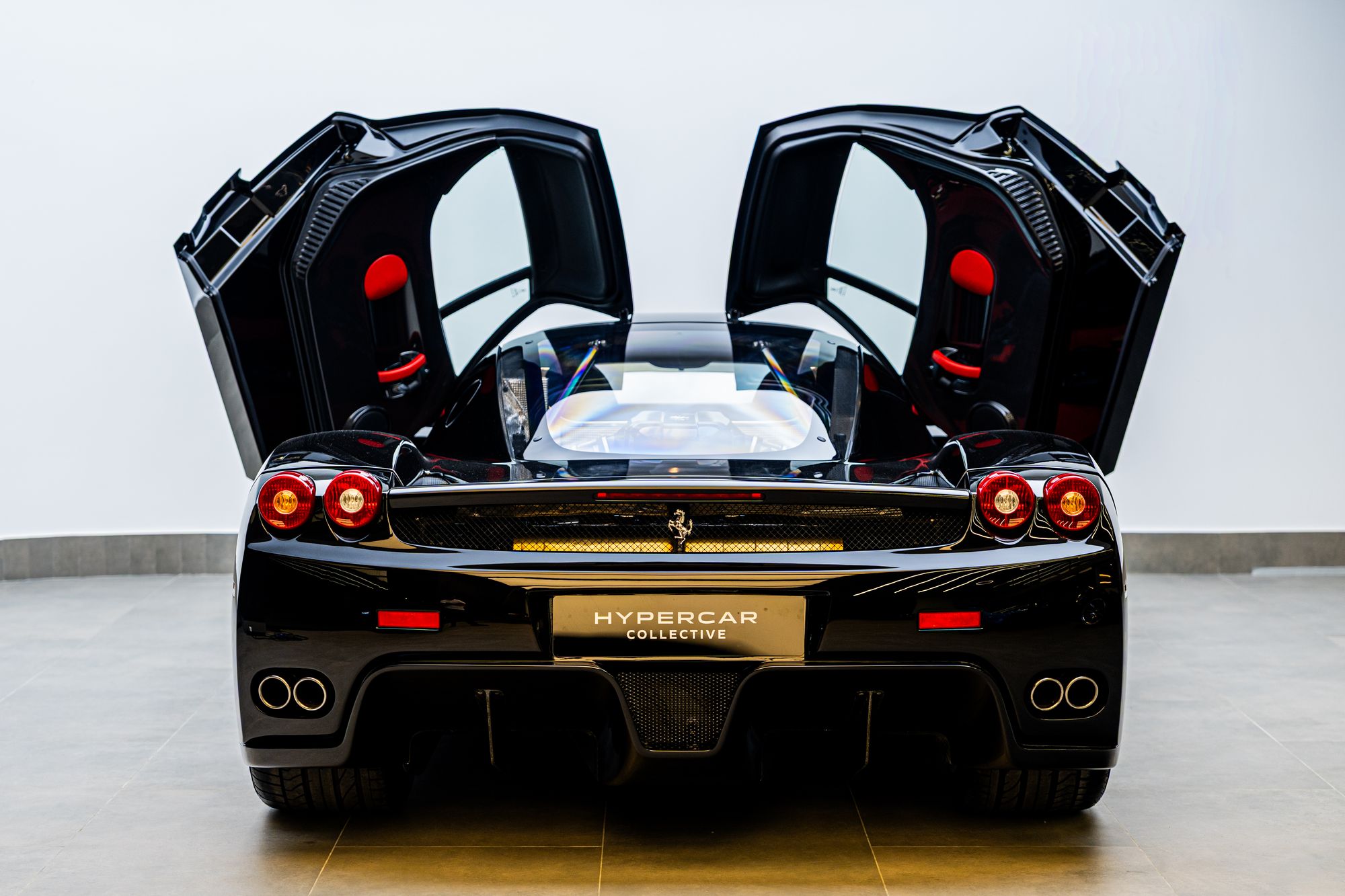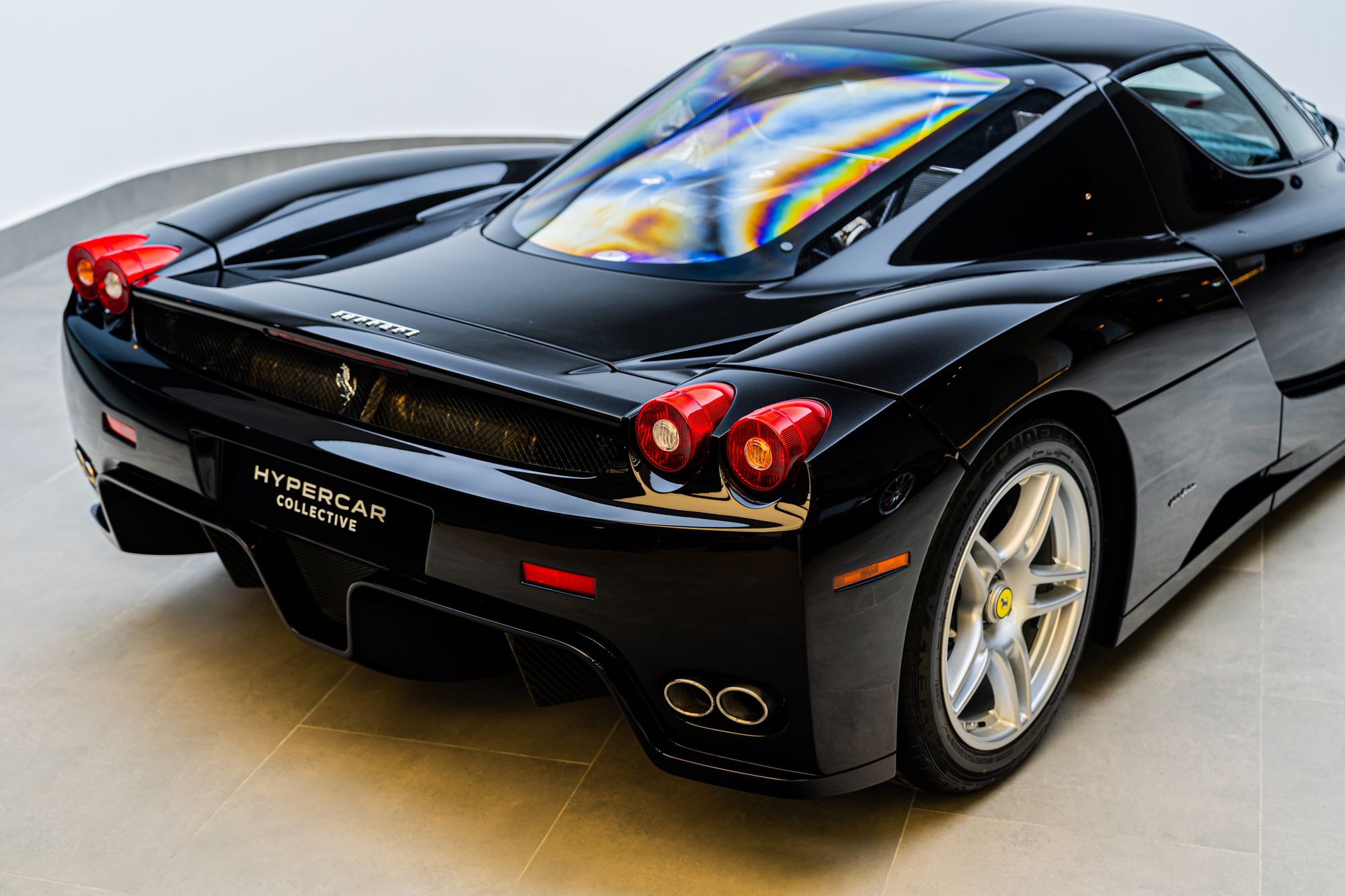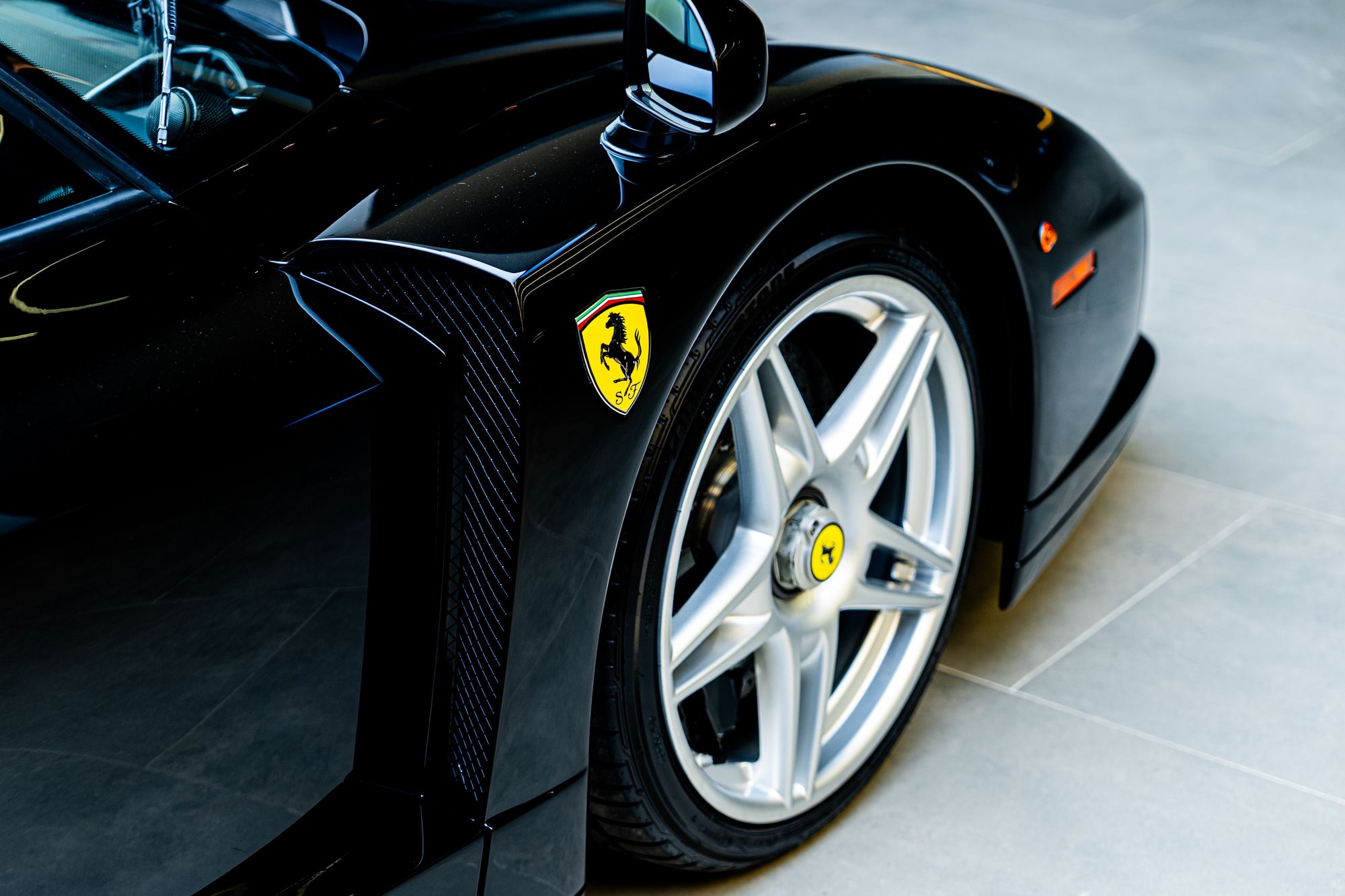 The Ferrari Enzo remains one of the most significant Ferrari's ever produced—a peak of Maranello’s engineering prowess and a defining symbol of early-2000s hypercar performance. Named in honor of the company’s founder, the Enzo was created using Formula 1-derived technologies, lightweight construction, and cutting-edge aerodynamics. This particular example is presented in the rare shade of Nero over a Nero and Rosso leather interior, a finish that accentuates the car’s dramatic lines while offering a subtle, menacing presence distinct from the more commonly seen Rosso Corsa.