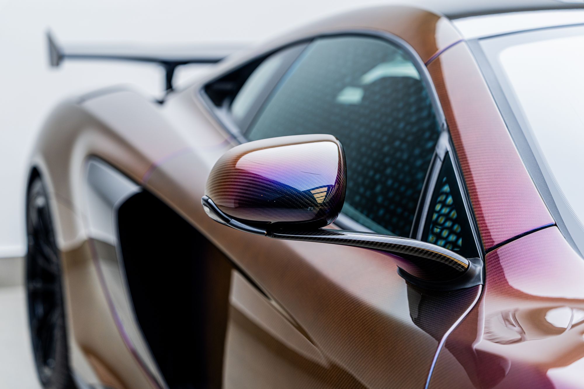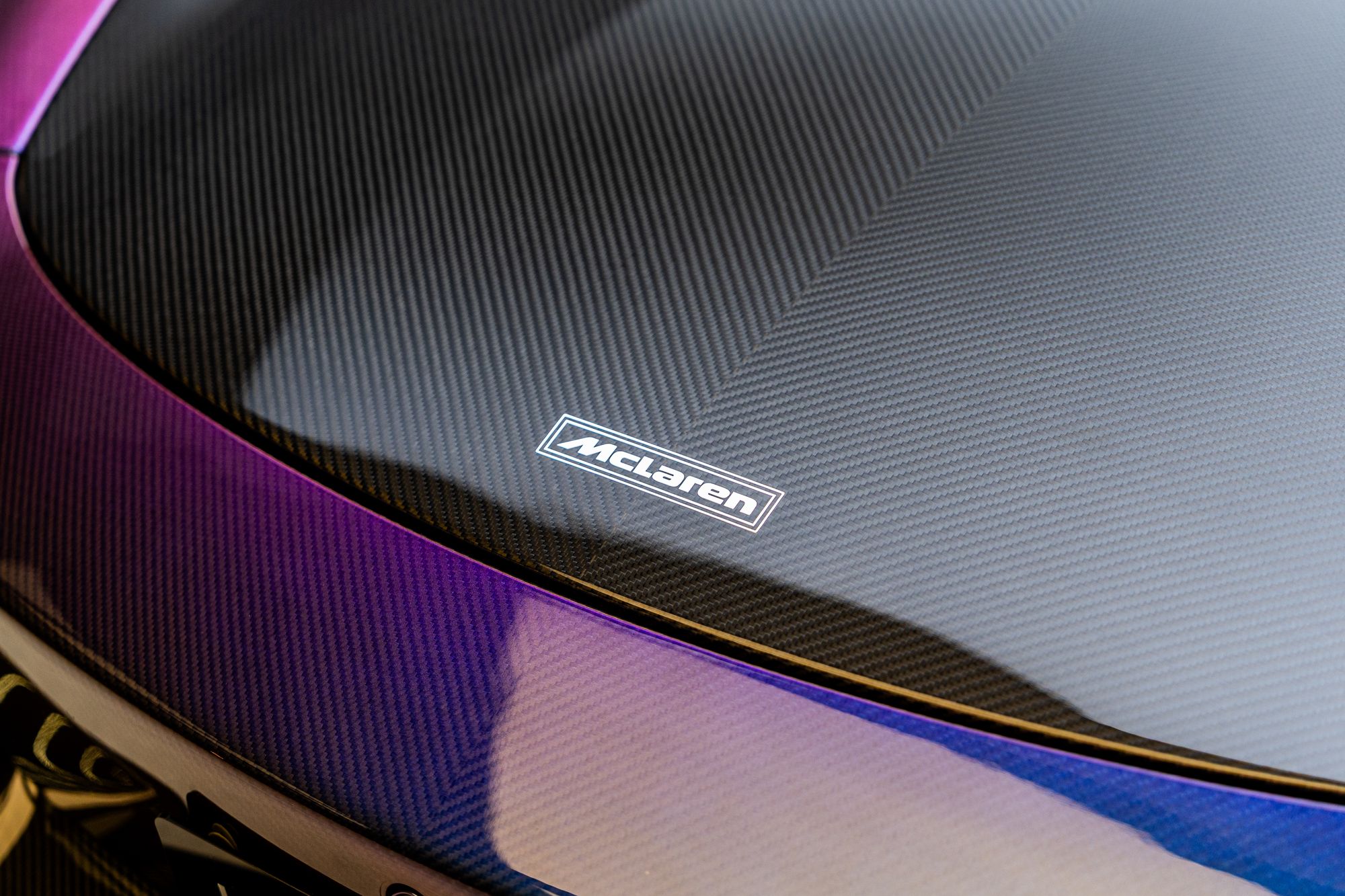 McLaren Rear Badge with Pacific Colour Stream Carbon Fibre Speedmark